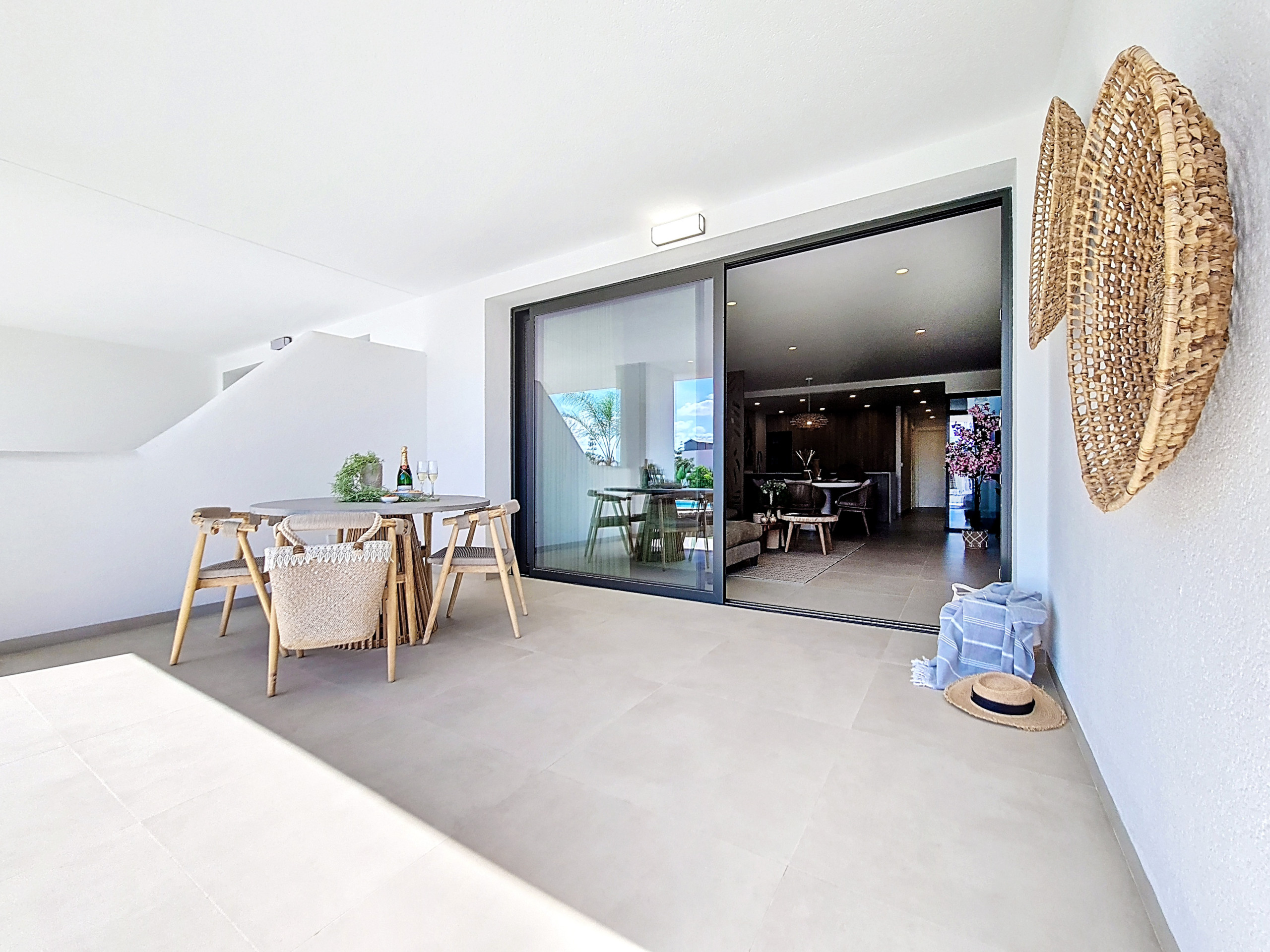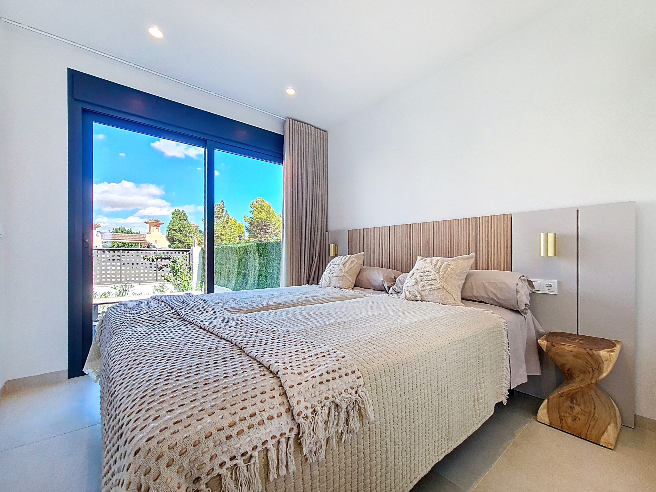 On the second floor, you’ll find two further spacious bedrooms, one with an en-suite bathroom. Both rooms have their own private balconies furnished with a table and chairs, ideal for a peaceful morning coffee or evening drink. All three bedrooms offer ample wardrobe space, and the décor throughout is of a very high standard, giving the entire apartment a luxurious yet homely feel.