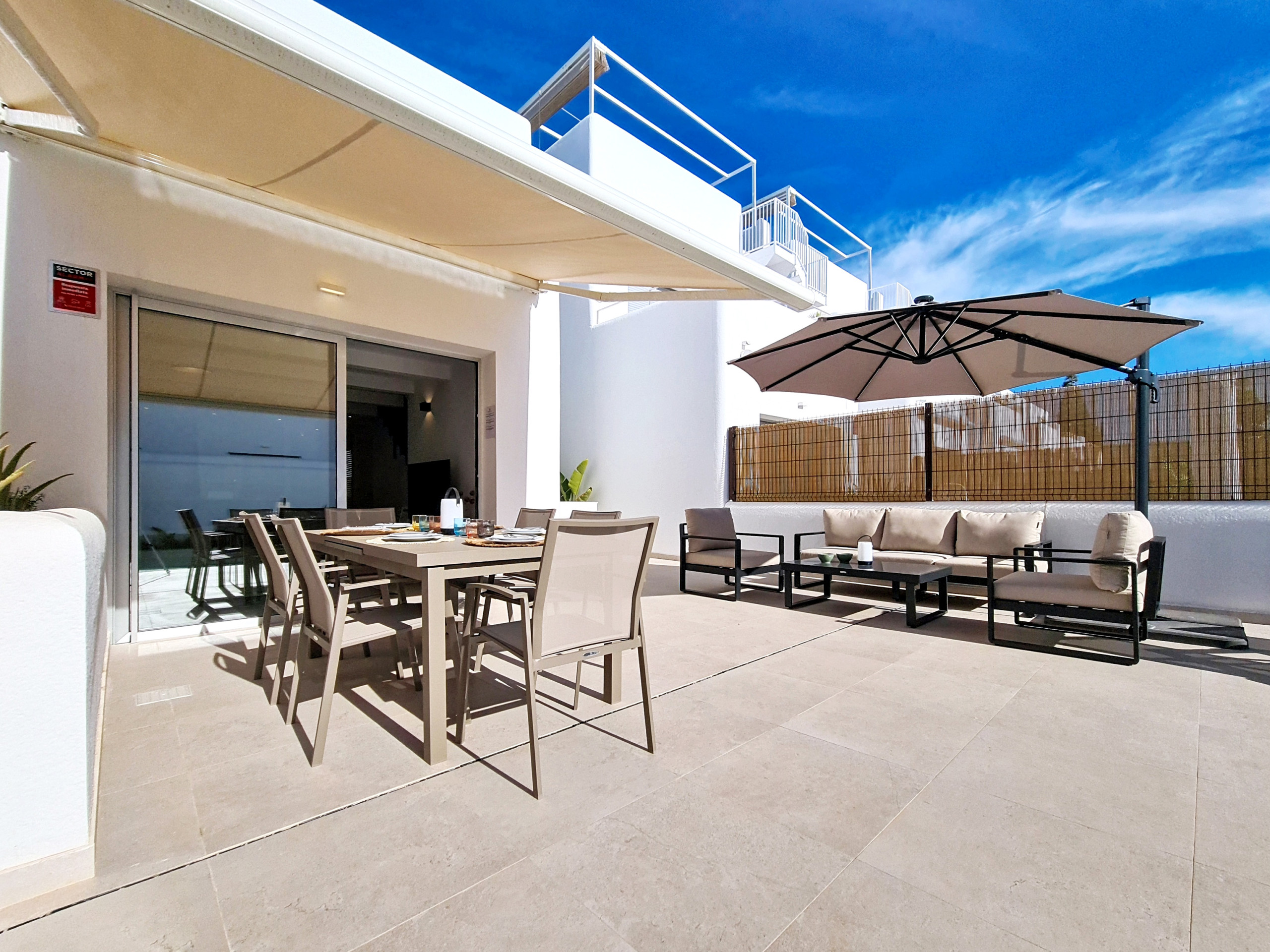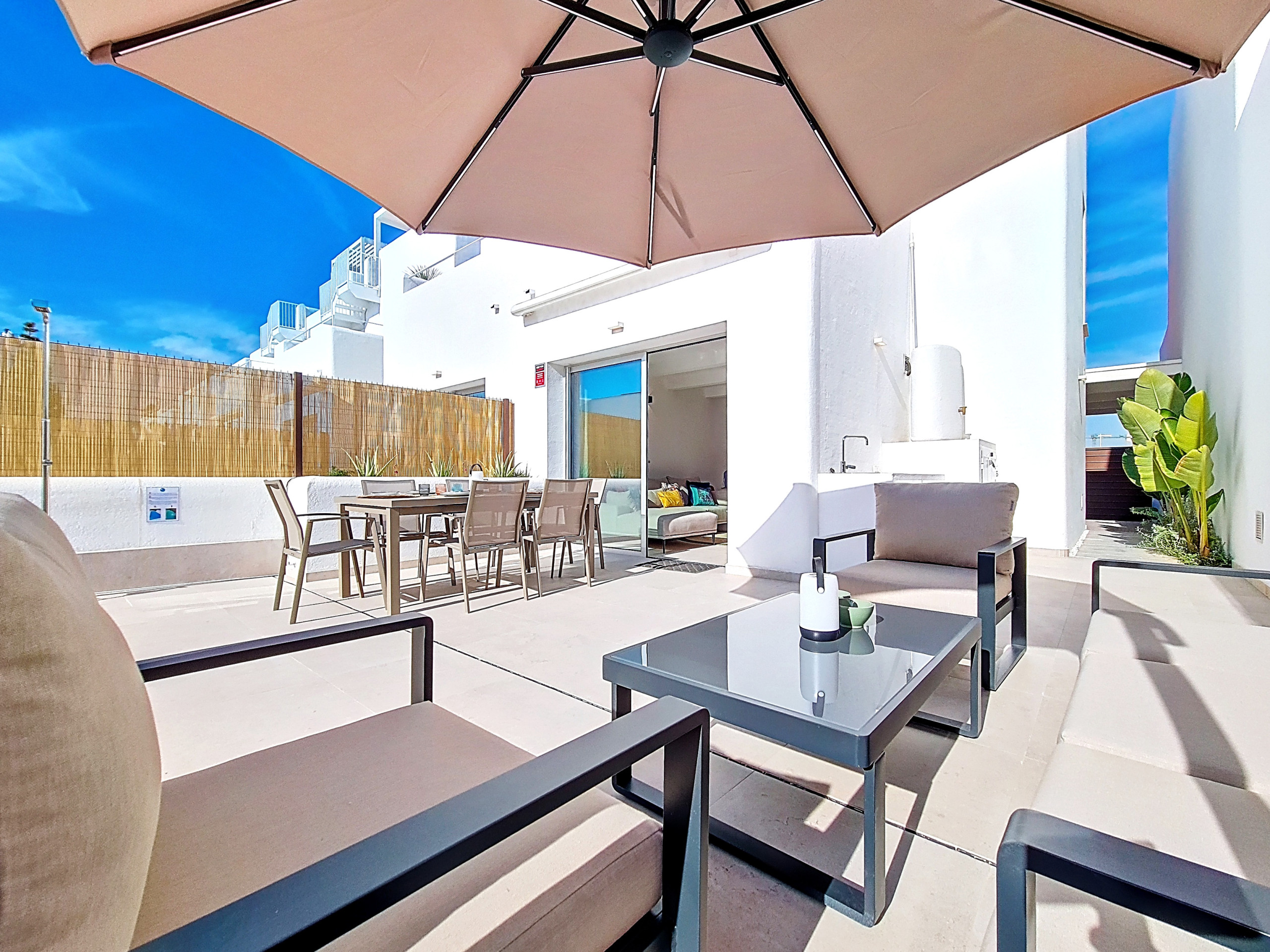 Een van de hoogtepunten van de Villa is het privé dakterras, met een gezellige zithoek, een grote eettafel en een BBQ - een ideale ruimte om te ontspannen, te vermaken of te genieten van lange, ontspannen avonden onder de Spaanse zon.