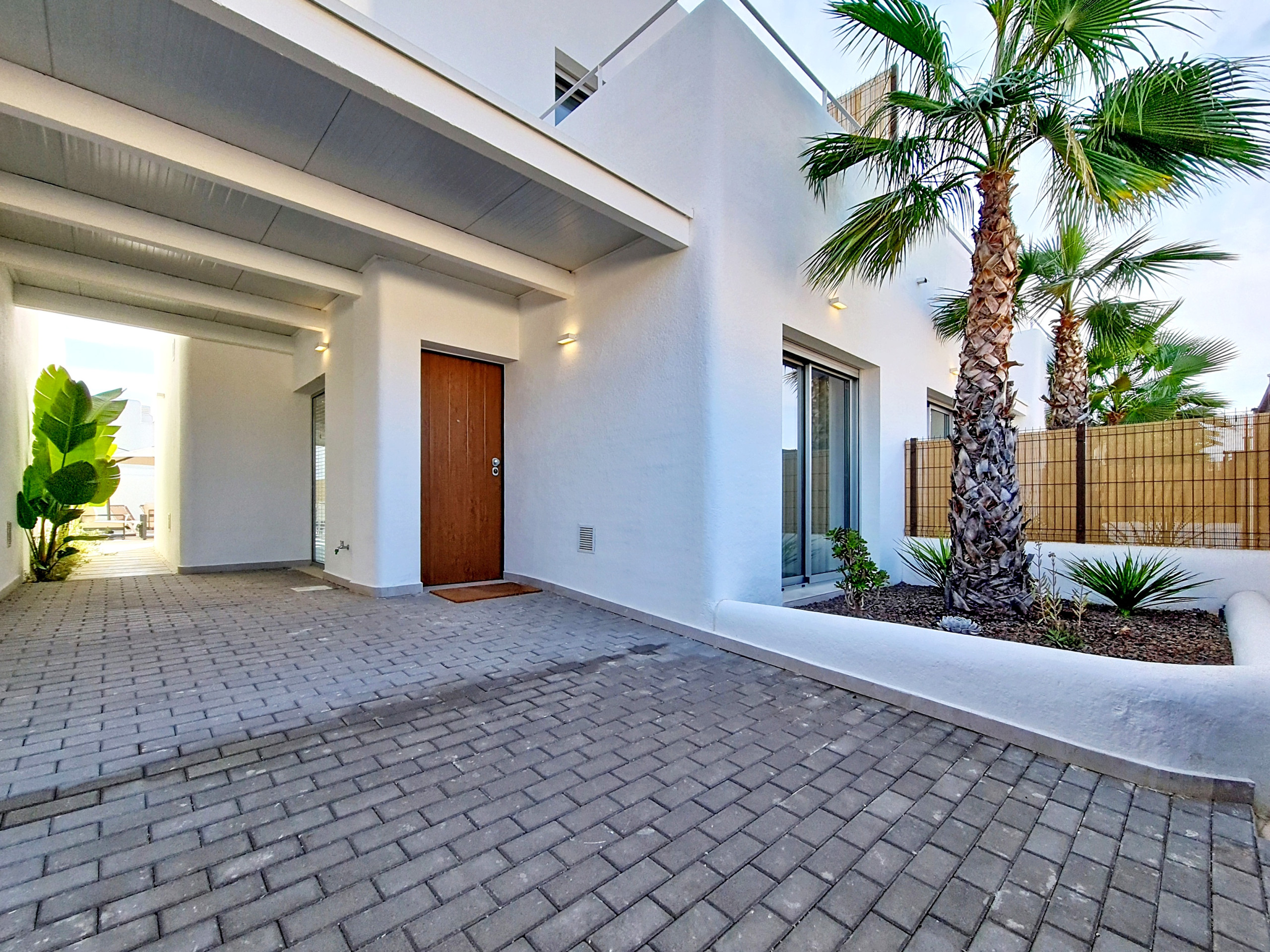 De villa's 3 slaapkamers zijn zorgvuldig ontworpen. Op de begane grond heeft de slaapkamer direct toegang tot een badkamer, die ook een aparte ingang heeft vanuit de hal. Deze slimme indeling maakt het mogelijk dat de badkamer zowel als een privé-ensuite als de hoofdbadkamer op de begane grond van de villa fungeert.